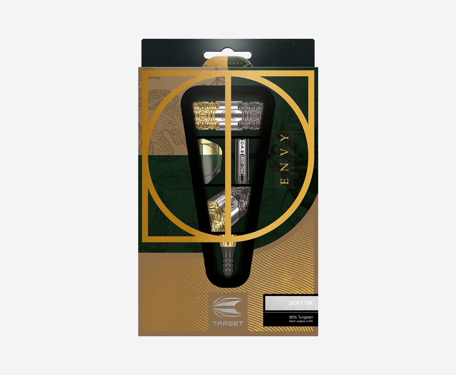 Featuring an unique spot UV design to complement the luxurious Cult Envy darts, the metallic gold finish adds a touch of elegance to each throw.