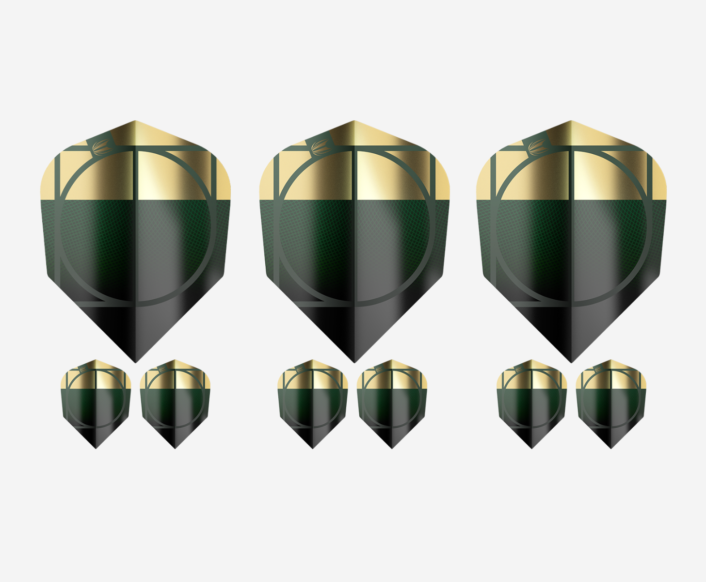 Designed to complement the luxurious Cult Envy darts, the deep green and striking gold accents complement each other for a distinctive, elegant design, creating a truly special look.