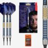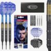 The Josh Rock Brass darts are designed in collaboration with “Rocky”, the 2024 PDC Dutch Darts Championship winner and 2022 PDC World Youth Champion. With a striking black PVD performance coated straight barrel, enhanced with machined radial grooves for improved grip and dart control and contrasting gold flecks of paint at the rear.