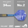 Included in the set are 3 sets of pro grip shafts (short, 34mm) allowing you to customise your dart setup with 3 diverse colour options; black, white, and blue. Crafted from a durable nylon compound, and universal 2BA thread. The No.2 Pro Ultra flights are also provided in 3 colourways, made from a durable 100-micron material, featuring a spot UV print, which adds an additional layer of coating to the flight.