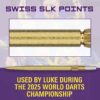 Designed for elite performance, the Swiss SLK gold points were Luke’s choice during his World Championship victory. These precision-engineered points feature a textured finish, enhancing board grip and significantly reducing bounce-outs for a more consistent and reliable throw. The patented Swiss Point technology allows for quick and effortless point changes, ensuring you can customize your darts to suit your playing style. This set includes both 35mm and 42mm interchangeable points, giving you flexibility in setup, along with a premium Swiss Point key tool for instant adjustments.