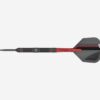 Crafted from 90% tungsten, expertly milled with radial grooves at the front, and nano grooves towards the rear, enhancing the darts finger grip. The barrel is then sandblasted and treated with a sleek black PVD coating for enhanced durability and a refined matte finish, with flecks of red to add a pop of colour to the barrel.