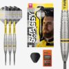 Equipped with black Swiss DS points, each laser-etched with a micro diamond grip pattern, the darts deliver enhanced board entry and a reliable hold during play. The patented Swiss Point system allows for fast point changes using the included Swiss Point tool—giving players full customisation in seconds.
