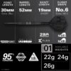 Fitted with 30mm Swiss Storm Points in black, the darts provide a seamless, aerodynamic connection between barrel and board. The patented Swiss Point technology allows quick, secure point changes with the included Swiss keyring tool, while an additional set of 35mm Swiss Storm Points offers customisable performance.