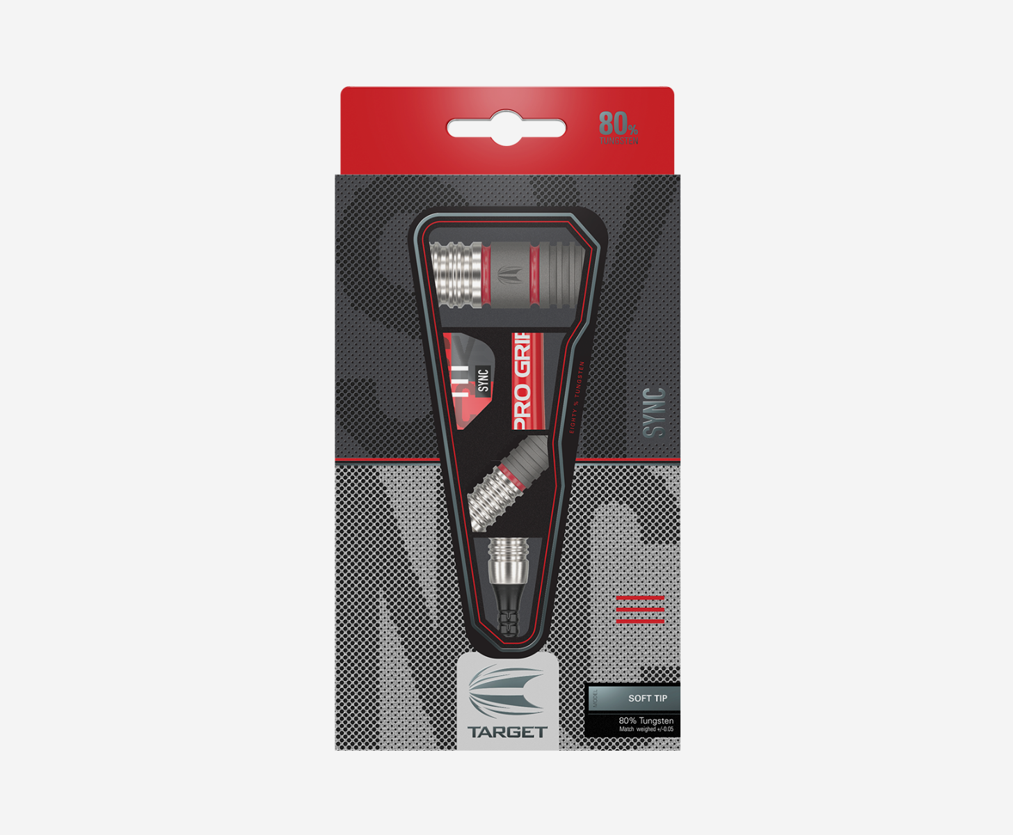 The darts are completed with a Red Pro Grip Shaft and exclusive Sync flight designs.