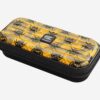 The Buzz Takoma Wallet is an eye-catching and durable dart wallet, designed as part of the Ento range, inspired by the intricate beauty of bees, featuring a bold, honey-yellow backdrop adorned with a vibrant bee-themed pattern.