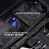 The wallet boasts efficient organization with two zip-locked pouch pockets, offering dedicated space for spare dart accessories such as flights, shafts, points, or a Swiss Point tool, making them easily accessible during intense games.