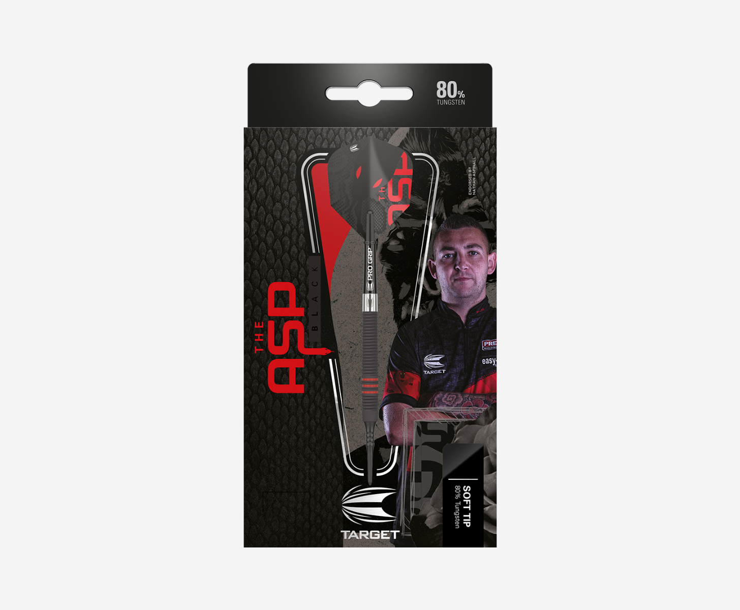 The darts are completed with black Pro Grip short shafts, black Pixel Tips, and signature Asp flights.